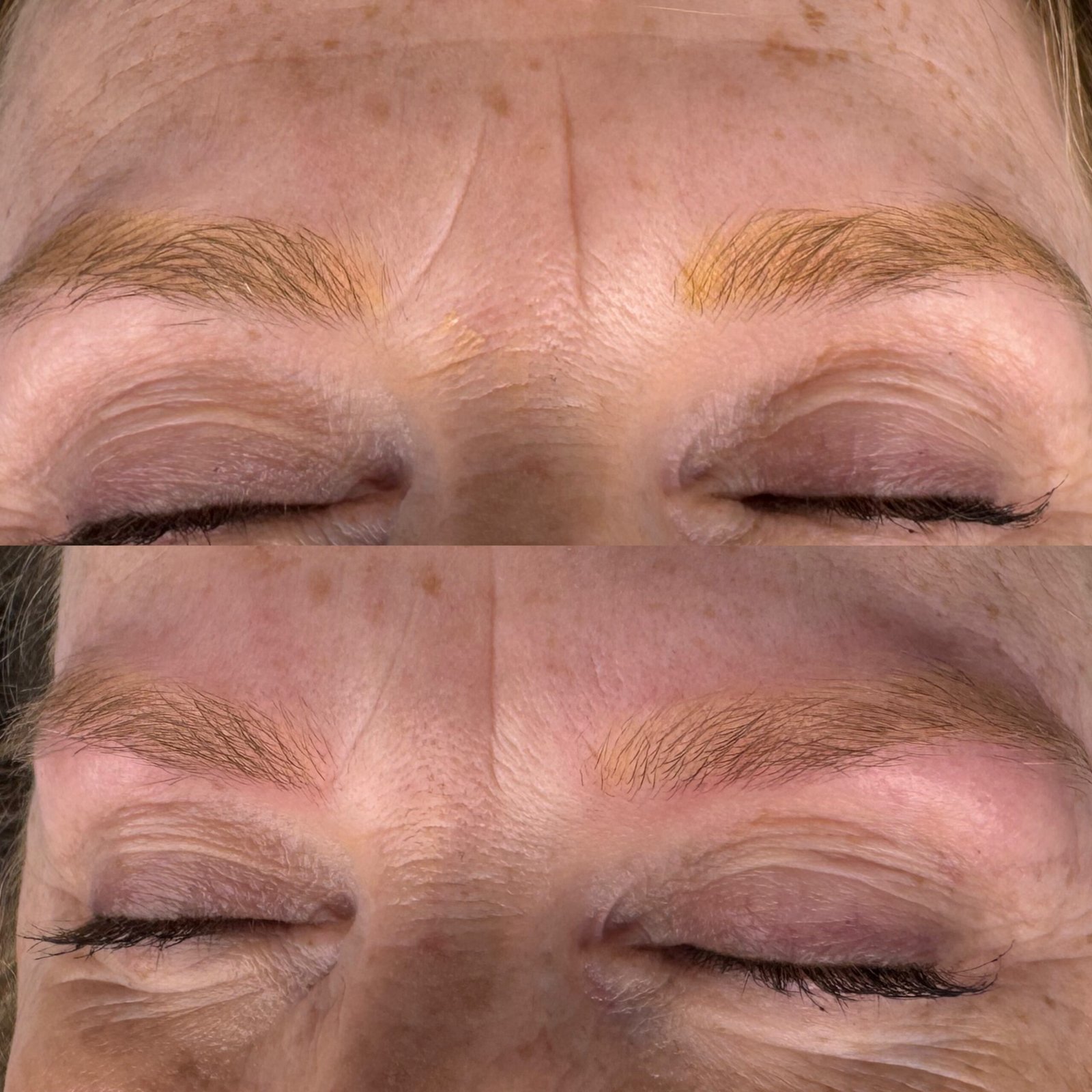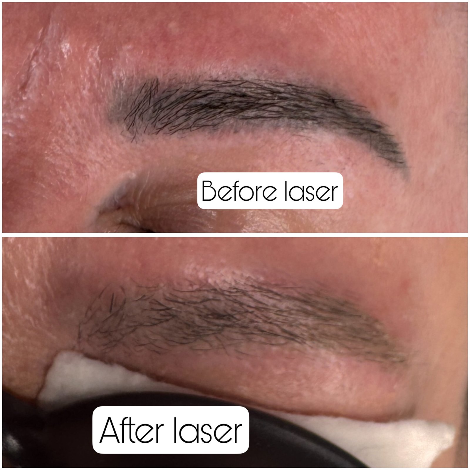 If you’re removing permanent makeup from brows, rest assured that the laser used will not remove brow hair. You may notice temporary “frosting” or whitening of brow hairs for a few days, but this will fade.